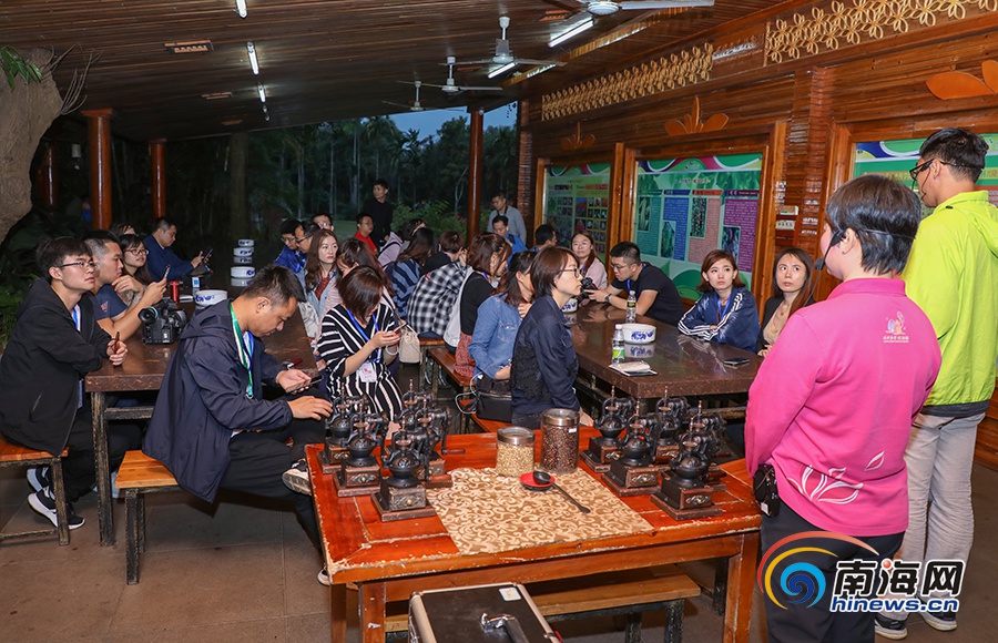 11月25日,“改革開放看海南”2018年全國融媒體海南行采訪團(tuán)在興隆熱帶植物園品嘗咖啡。南海網(wǎng)記者李昊攝