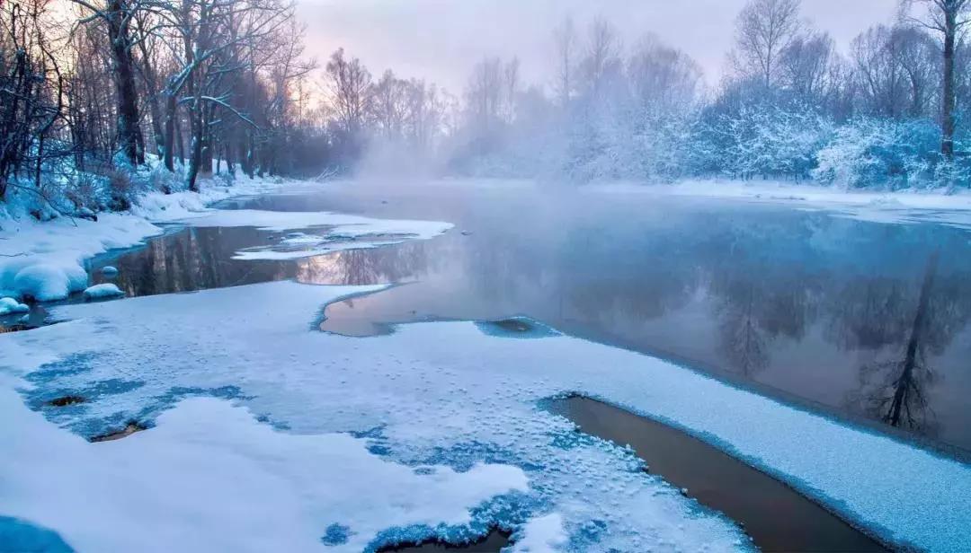 那氤氳的水汽,晶瑩的霧凇,在這漫天雪白的世界里,天地都仿佛沒(méi)有了喧囂。