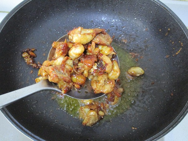 7.最后再把炸好的雞肉回鍋,煸炒片刻后熄火出鍋
