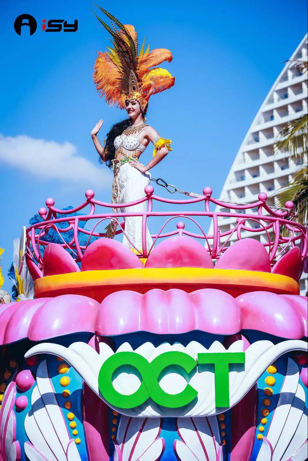 “炫動(dòng)三亞”花車和“絲路情長(zhǎng)”花車,是由海南華僑城文化演藝有限公司特別提供。“炫動(dòng)三亞”彰顯著三亞獨(dú)有的旅游人文特色;“絲路情長(zhǎng)”則代表著三亞所肩負(fù)的作為“一帶一路”重要支點(diǎn)城市的重要責(zé)任。