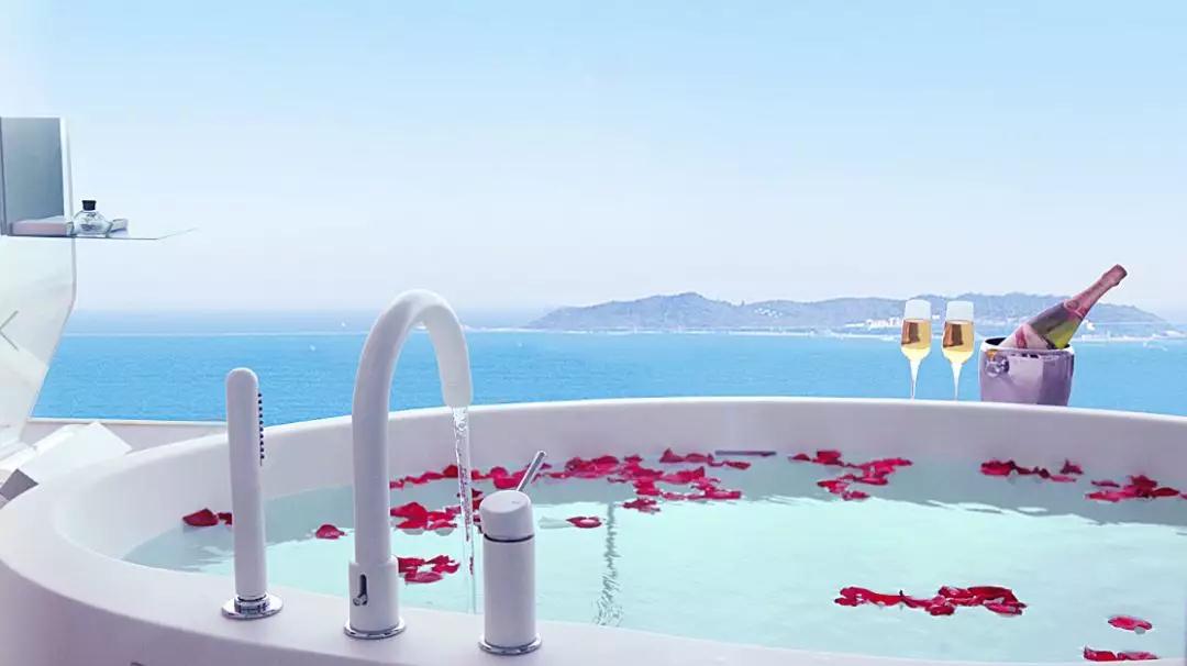 酒店布局呈馬蹄形,入住的房間都能欣賞到迷人海景。房間里的設(shè)計(jì)簡約而不失典雅。圓頂紗簾環(huán)繞的大圓床、還設(shè)有獨(dú)立浴缸,整體空間寬敞。