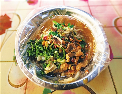 “老板,我要一碗白板酸,多放些鹵汁”“我也要一碗,放辣椒”上午9時30分,白板酸攤位上的食客依然絡繹不絕。一張長木桌,幾張長板凳,一個火爐,便是攤位的主要家當。食客們在木桌一邊就坐,另一邊老板忙著燙粉、添料、淋汁……動作嫻熟,一碗熱氣騰騰的白板酸很快就被端上桌。