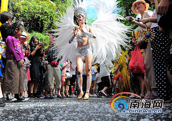 游客、演員“雪”中互動。 南海網記者 沙曉峰 攝