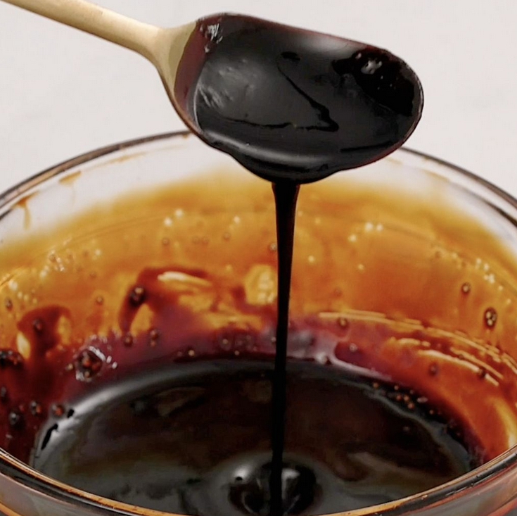 2 煮飯的過程中,把15g冰糖、30ml水、30ml老抽用微波爐或者奶鍋加熱到冰糖融化,醬汁變得濃稠。