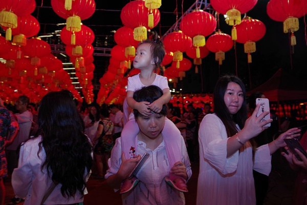據悉,天涯區用3000盞燈籠構建出了元宵燈會長廊,市民游客沿著燈籠長廊前行抵達活動主會場找謎語猜謎語,紛紛在燈籠長廊、猜謎現場合影拍照?!暗谝淮卧谌齺唴⒓舆@么有人氣的海邊元宵活動,聽著大海的浪聲,看著火紅的燈籠,喜慶?!奔易∪齺喪型赓Q路的市民符天旺全家出動,就是為了感受濃厚的年味。