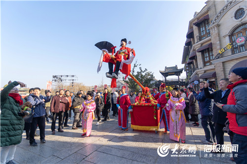據了解,為了讓更多人在出游時感受到傳統的“年味兒”,2019年的臺兒莊古城新春廟會以“弘揚傳統文化 打造中國非遺年文化品牌”為主題,社火巡游、南北獅表演、火龍鋼花、老北京天橋絕技、柳琴戲、魯南皮影戲等近20種全國各地的“非遺”項目、經典傳統文化項目紛紛亮相,讓古城的游客過足了“眼癮”,成為臺兒莊古城“攬客”的“利器”。
