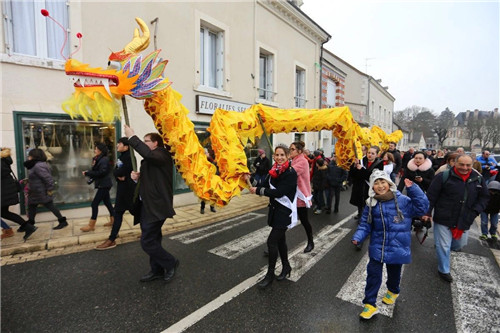 龍獅游行、寫春聯、包餃子、放煙花、看變臉、體驗傳統剪紙、包餃子……一個個飽含中國風的元素充滿了塞納古堡。據統計,近千名法國小學生在古堡中體驗了中國春節文化和傳統民俗;千余名當地民眾參加了當天的龍獅游行;5000名當地及周邊居民觀看了迎豬年的焰火,并用中文共同喊出了“新年快樂”……“中國春節在法國古鎮大批圈粉,讓法國民眾又一次感受到了中國文化的無限魅力”。