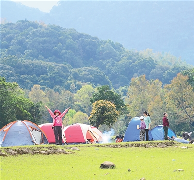 游客在日月灣露營(yíng)。 本報(bào)記者 張杰 通訊員 溫忠齡 攝