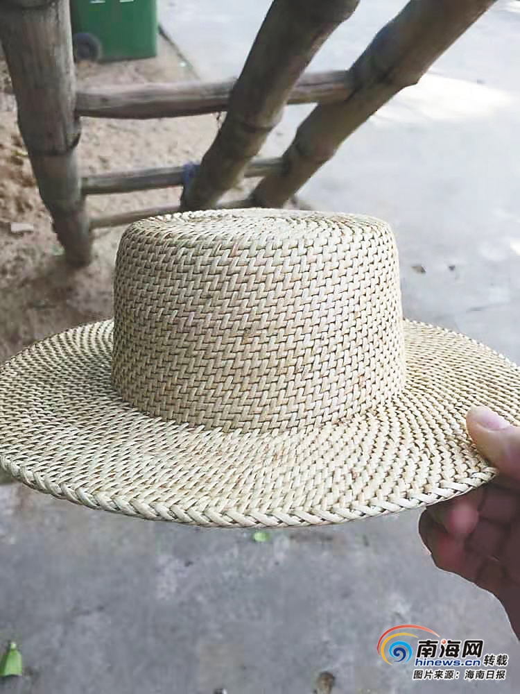 黃青華將黎族傳統工藝與現代元素相結合的藤編帽子。
