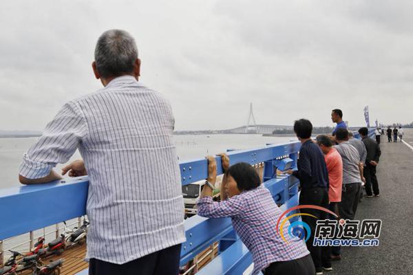3月18日,海文大橋通車,文昌鋪前的鄉親們遠眺海文大橋。南海網記者 姚皓攝