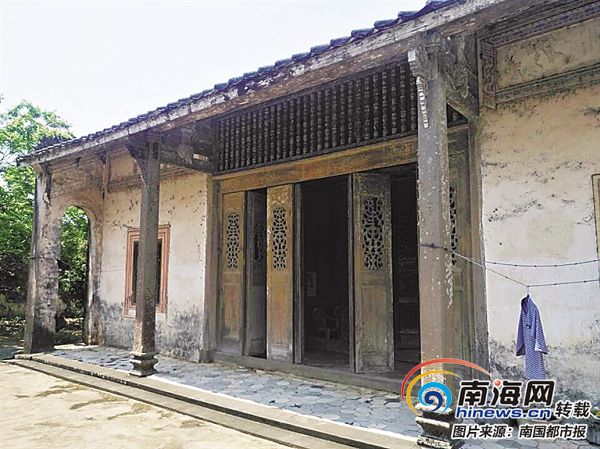 林家大院是文昌市保存相對完好的清朝大型建筑之一,由越南歸僑林鴻運所建。老宅如今的主人林道芳今年73歲,是林家大院的第四代后人。“這座房已有130年的歷史。當年曾祖父林鴻運下南洋謀生,在越南開煙酒公司發大財了,便回到家鄉興建祖屋。”林道芳介紹,建宅時,林家請了200多個石匠、木匠,耗時三年,才把一排三進青磚灰瓦的主屋修建完成。當時選用的都是高級石料、木材,從越南用船運回來。整座大院坐東南朝西北,三進格局,磚木瓦構筑,抬梁式,硬山頂,占地面積1700多平方米。屋高7.3米,這在海南難得一見。記者看到,正屋梁頭、斗拱均雕有精美的蛟龍、麒麟等圖案,八扇門頁和神龕同樣雕有梅蘭竹菊及喜鵲、鯉魚等圖案,造型逼真,栩栩如生。