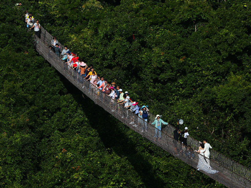 圖為中外游客暢游亞龍灣熱帶天堂森林旅游區(qū)的景象。(黃慶優(yōu)攝)