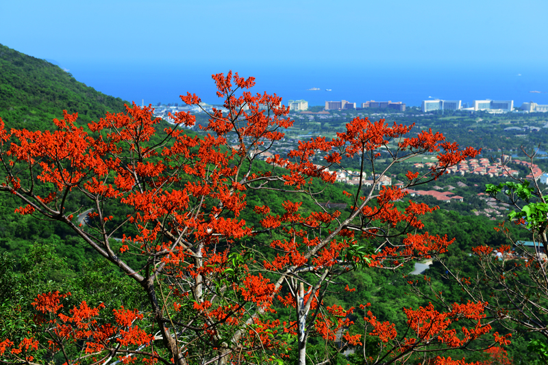 圖為每年的“五一”節(jié)期間,亞龍灣熱帶天堂森林旅游區(qū)盛開的美麗梧桐花景象。(黃慶優(yōu)攝)