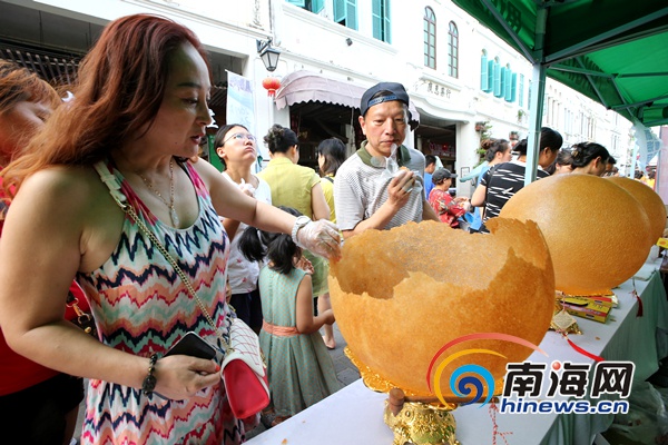 海口市民和游客在現場品嘗海南美食煎堆。南海網記者陳望 攝