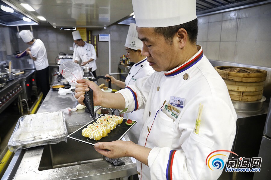 水晶宮粵菜酒樓的廚師在制作精美的食品。南海網(wǎng)記者 姚皓 攝