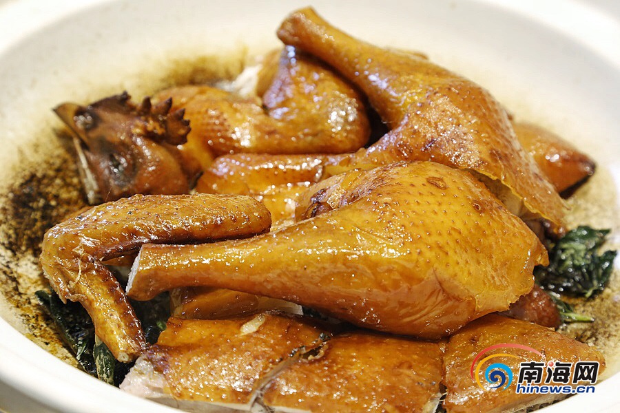 水晶宮新派粵菜的獨(dú)創(chuàng)招牌之一哈嘍雞。南海網(wǎng)記者 姚皓 攝