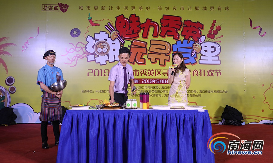 尋嘗里美食狂歡節現場,店家進行美食推薦。南海網記者 李昊 攝