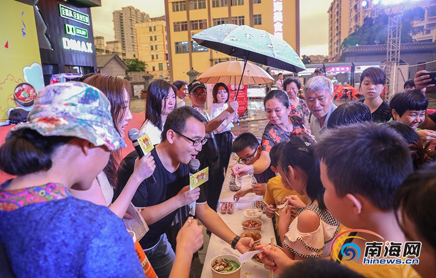同時,每天晚上,尋嘗里特色美食推薦環節,各美食商家紛紛向市民“秀”出招牌美食。其中,尋嘗里俠客街共“秀”出君之道辣湯飯、胖婆婆炸炸、鋪前糟粕醋、雪里藏真清補涼、蔥花男、格桑家、彬記咖喱牛腩粉、木桶魚燒臘、甜趣小鎮、黑色經典臭豆腐等共計34道美食。文秀煮鴨、凡鳳雞道、大海腩、牛焰、玉苞港海鮮店、臨高乳豬店、一品粥鋪、魚鮮生、旭天串串火鍋遇上燒烤、水晶宮、豪約克等11個商家也將店內的招牌菜推薦給市民。