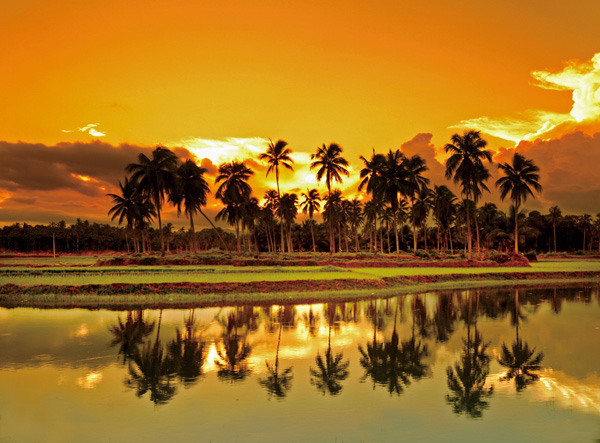 椰子洲島靠近海又臨著河,既非海上之島又非河心之島,是千百年來藤橋東河、西河流域的泥土長期沖積與海浪的相互作用而鑄成的肥沃之洲。洲島不高,島四周都是河系、水系,非舟楫不能登島,是目前三亞市海棠區(qū)一顆難得的綠寶石。它占地近5000畝地,由17個小島嶼自然形成。由于椰子洲島具有獨特的水系生態(tài),在當(dāng)?shù)卣桶傩盏谋Wo下,是目前海南島保留最原始的自然景觀島嶼之一。島上生長著各種灌木和蕨類植物,偶爾間或看見些檳榔樹、野菠蘿樹等等,自然相生,和諧共融,盡情張揚著充滿野性的生命力。特別是島上成千上萬棵椰子樹,一律以慣有的姿態(tài)直指天空,讓人不得不舉首仰望。正是因為島上長滿椰子樹,人們便稱之為椰子洲島。