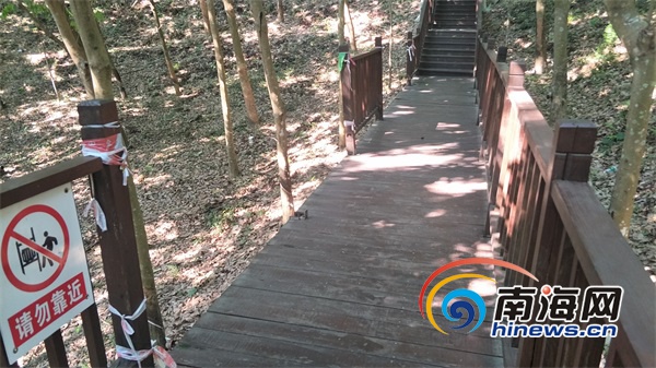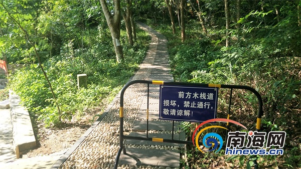 通往儋陽樓的木棧道損壞嚴(yán)重。南海網(wǎng)見習(xí)記者 李紹遠 攝