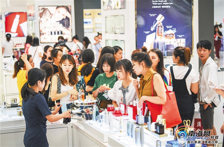 6月16日,海口市國興大道日月廣場免稅店內(nèi),各類商品琳瑯滿目,吸引眾多消費者前來選購。海南正在實施的更加開放便利的離島免稅購物政策,對消費者產(chǎn)生了巨大吸引力。