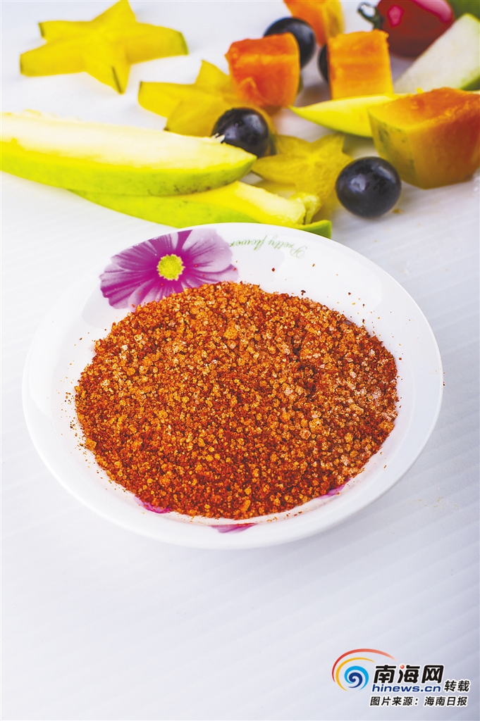 這樣的吃法讓外地人覺得不可思議,冠以它“黑暗料理”的稱號,但對海南人來說絕對是一種享受。水果的表面撒上辣椒鹽,能產生美妙的化學反應,一定程度上緩解水果的酸,增添甜味,別具浪漫熱帶風情。夏天,來一份蘸著辣椒鹽的水果,最是津津有味。
