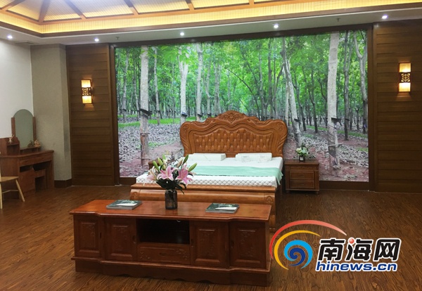走進館內,古色古香的裝修設計,系列高端乳膠枕頭、乳膠床墊,還有床、桌椅等橡膠木家具,以及山蘭酒、山茶油等墾區特色名優產品一一亮相。受到了現場經銷商和消費者的關注。