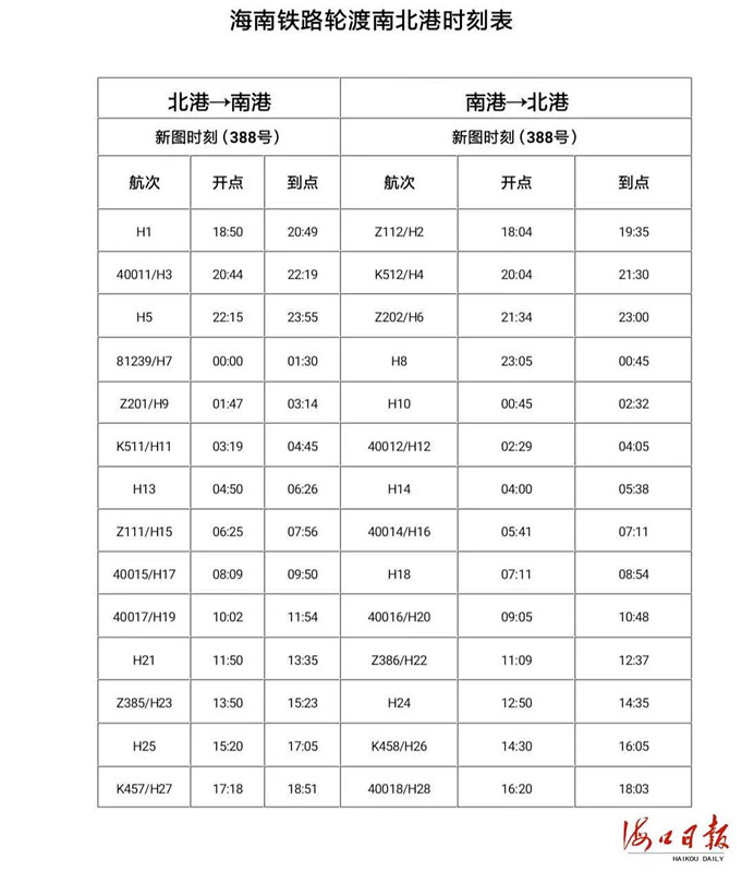 出行必看!10日起,海南鐵路輪渡調整航班運行圖