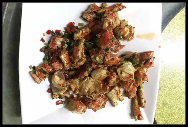“紅花蟹一般是用來搞香辣的,因為它不像藍花蟹那樣肉質細膩,它肉質是比較粗的。”