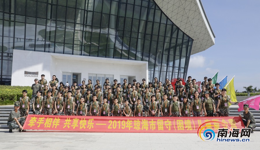 2019年瓊海市留守(困境)兒童夏令營營員在南海博物館門前合影留念。南海網記者 李昊 攝