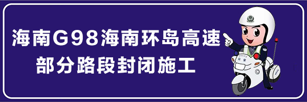 四、2019年8月5日至8月11日封閉G98環島高速公路大茅隧道右幅(海口往三亞方向)入口段第二行車道與應急車道,第一車道正常通行。