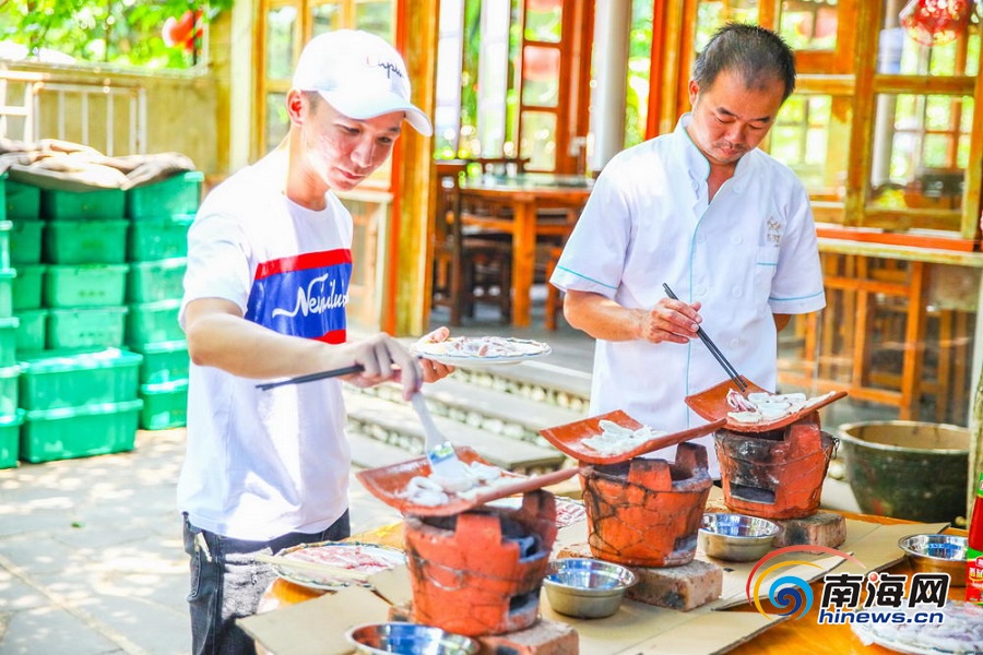 海南旅游頭條、南海網、南海網客戶端海口7月23日消息(海報集團全媒體中心記者 張茂)近日,在海南海口一家農家樂,廚師在展示越南“新奇”烤肉做法,吸引眾人圍觀。