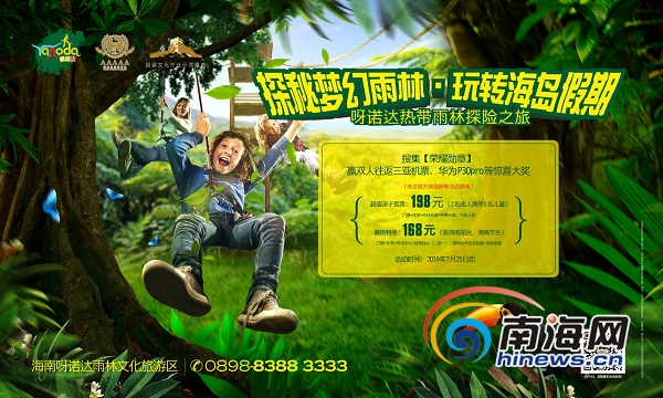 海南旅游頭條、南海網、南海網客戶端???月24日消息(南海網記者 孫令正 通訊員 葉玉琪)近期,三亞暑期游隨著影視劇《親愛的,熱愛的》的熱播再次掀起打卡高峰,各地游客慕名漂洋過海“清涼一夏”。位于大三亞旅游圈的呀諾達雨林文化旅游區也迎來暑期旺季,為豐富游客雨林旅游體驗,景區特別推出主題為“探秘夢幻雨林玩轉海島假期”的全新暑期精品游。