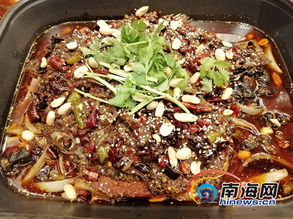 重慶廚師根據當地口味烹飪出的香辣烤羅非魚。南海網見習記者 鐘圓圓 攝