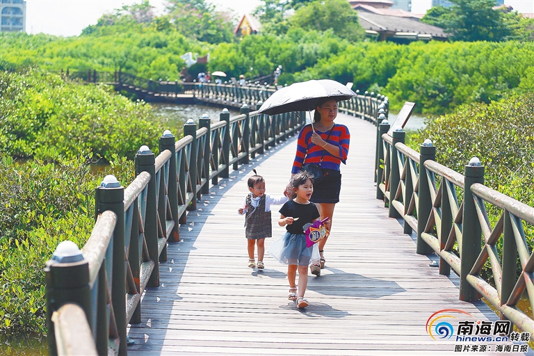 游客在紅樹林濕地保護公園游玩。海南日報記者 張杰 攝