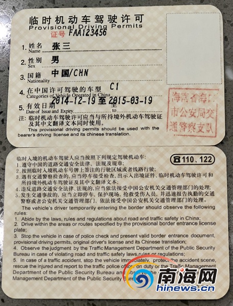 對(duì)因旅游、商貿(mào)、探親等短期在海南入境停留的境外人員,可持境外機(jī)動(dòng)車駕駛證直接申請(qǐng)小型汽車臨時(shí)駕駛許可,免予到醫(yī)院進(jìn)行身體條件檢查。