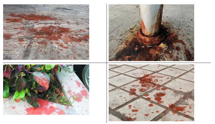 ?樹池、人行道、橋頭等血紅檳榔污漬