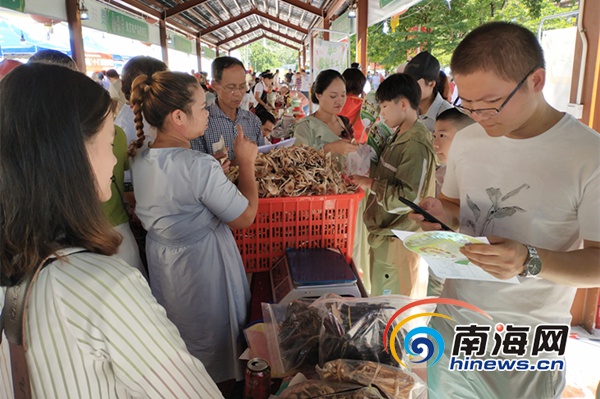 開幕式上互動游戲精彩有趣,特色展區同樣看點不少。美食展區的竹筒飯、土窯雞、三色粽、陵水酸粉等為游客帶來味蕾的享受;扶貧集市上,保亭各鄉鎮以及電商協會帶來的雞鴨活禽、椰子油、百香果、蜂蜜等,則成了居家人士愛逛的地方。“平時都會特意托朋友在鄉下找正宗的蜂蜜和土雞,這次來保亭玩,剛好遇上這個活動,就趕緊逛一下買些農家蜂蜜和土雞。”來自海口的游客鄭情怡說道。