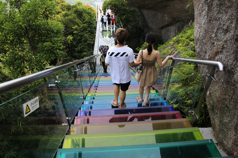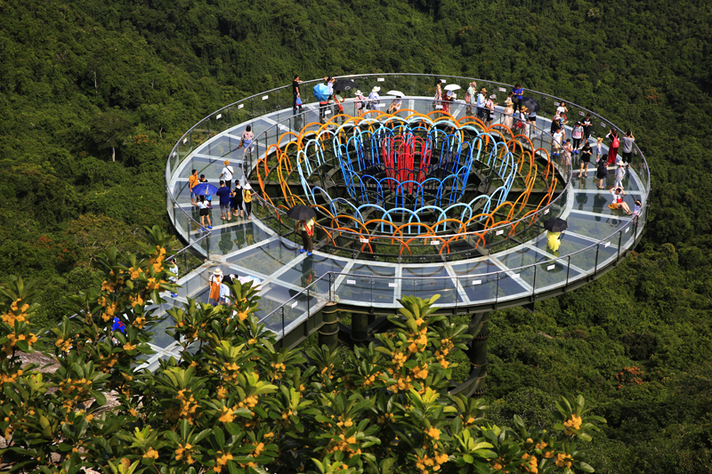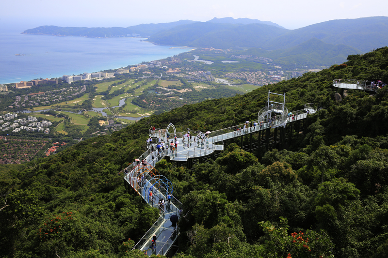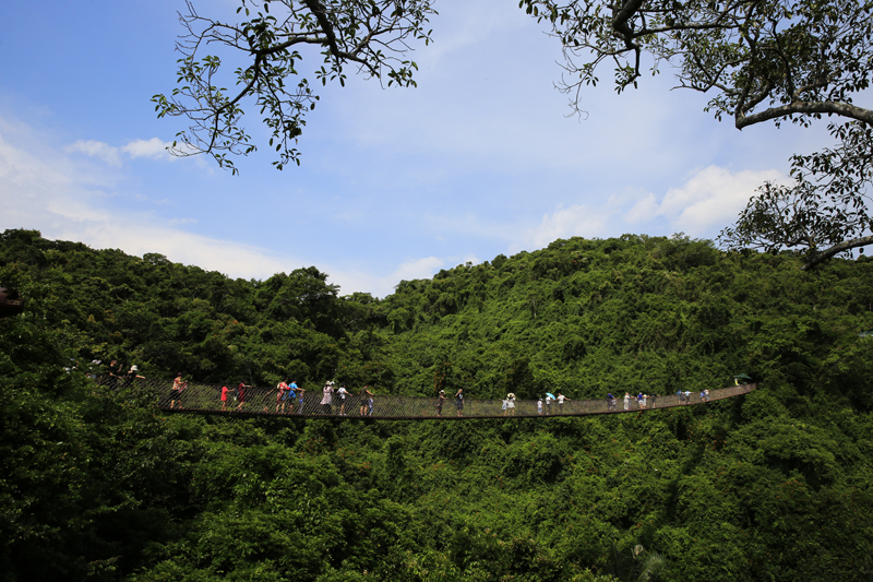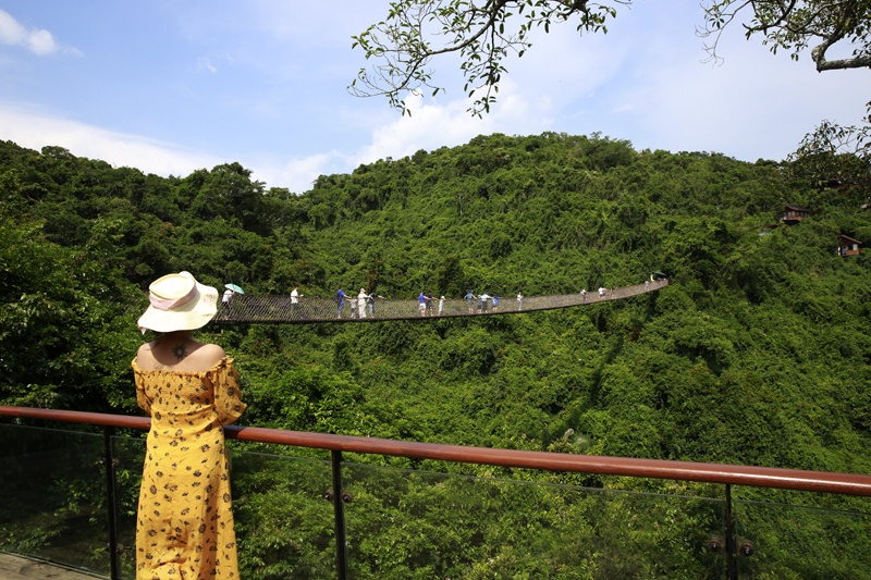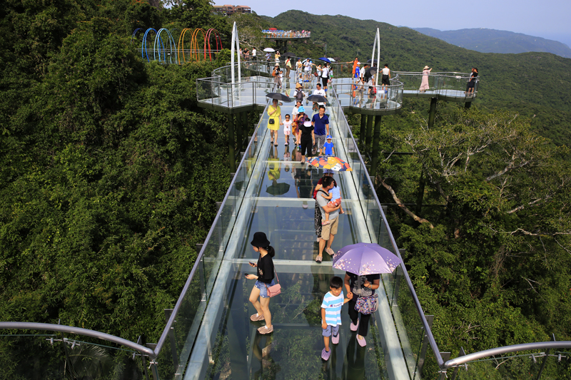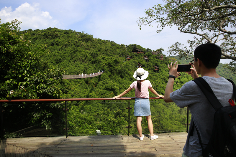 8月7日,中外游客激情暢游三亞亞龍灣熱帶天堂森林旅游區的情景。(黃慶優攝)