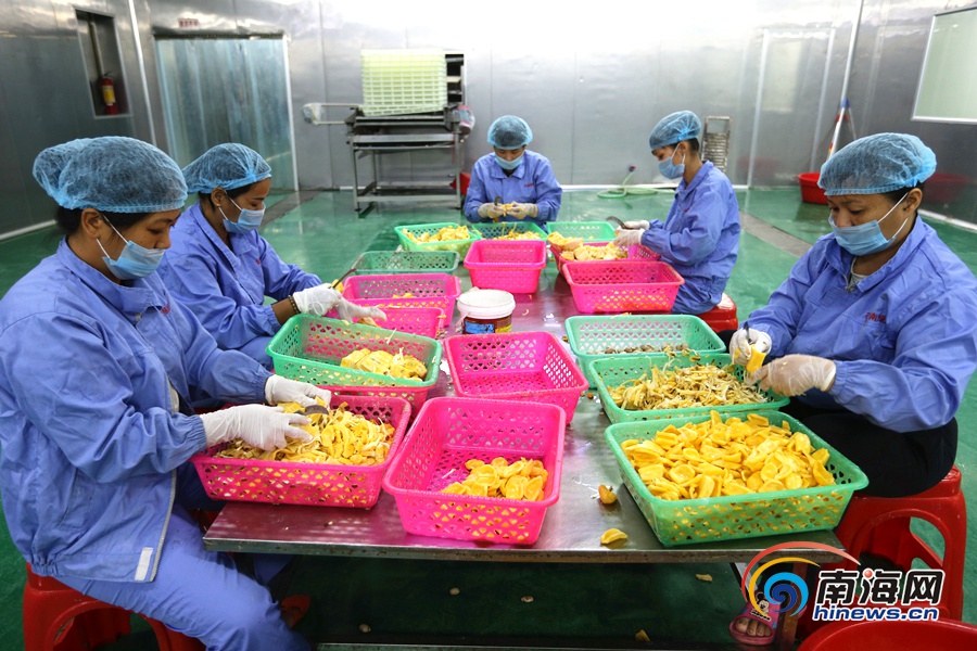“公司把確保職工獲得最大經(jīng)濟(jì)利益作為出發(fā)點(diǎn),除了拓寬銷售渠道,更重要的是推進(jìn)水果加工,延伸產(chǎn)業(yè)鏈?!蹦辖疝r(nóng)場(chǎng)公司黨委書記、董事長(zhǎng)李國慶說,本地加工拓寬了菠蘿蜜鮮果銷售、利用的渠道,在收購價(jià)格走低或果品賣相不好時(shí),可由加工廠回收托底。
