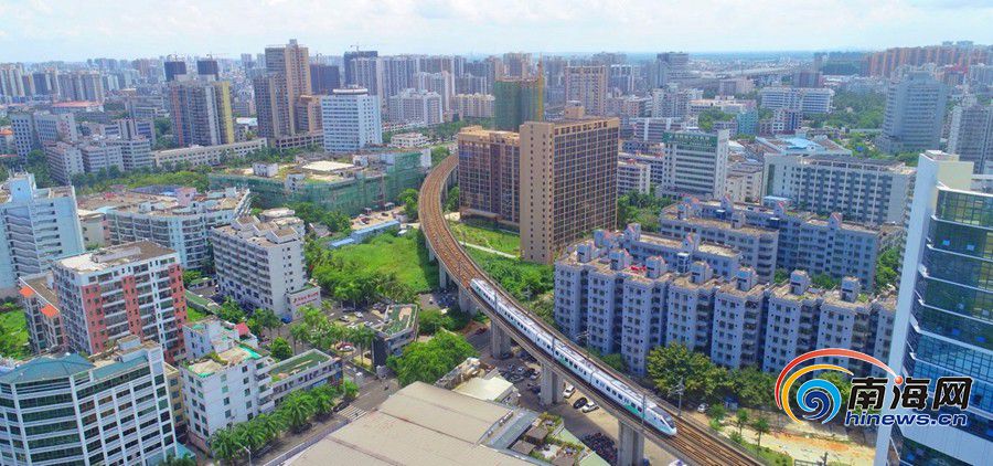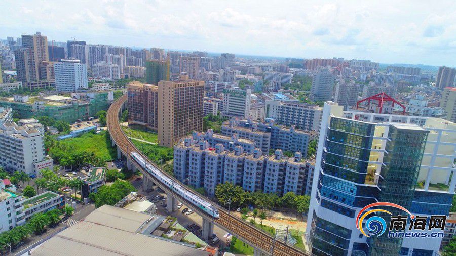 8月28日,一列市域列車經過海口市南海大道路段。海報集團全媒體中心記者 張茂 攝