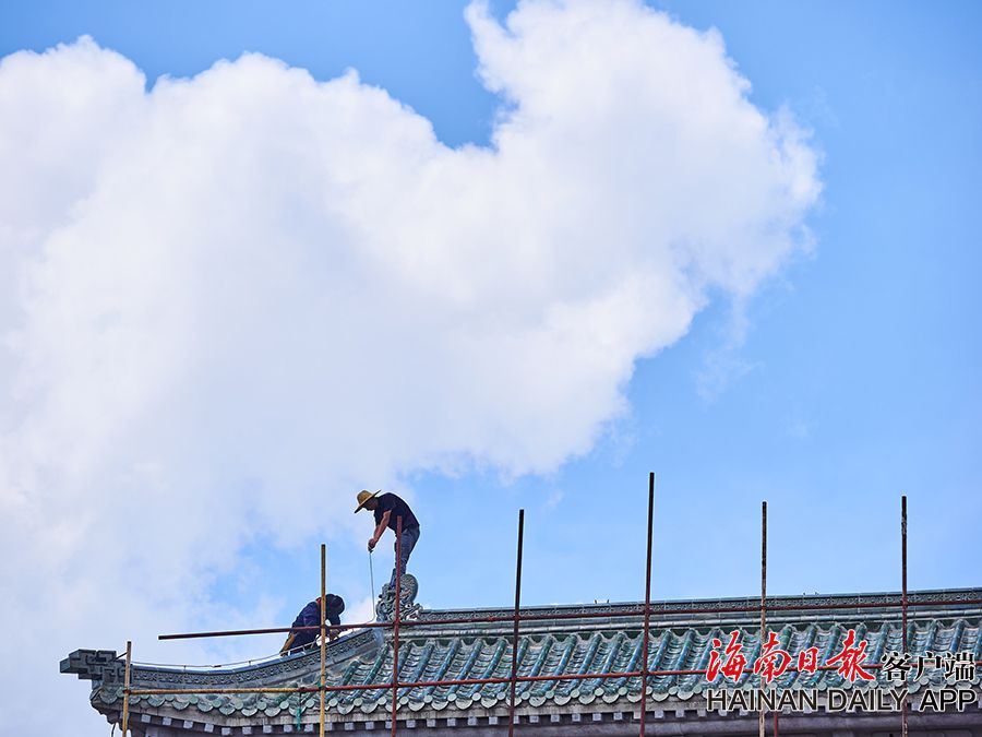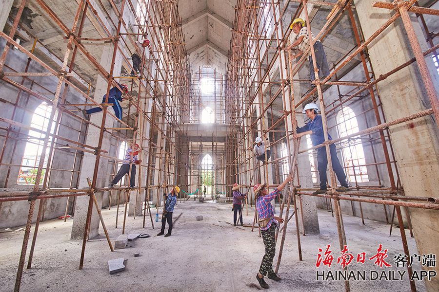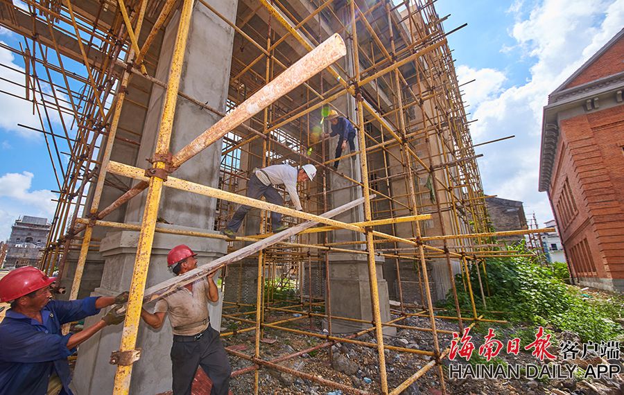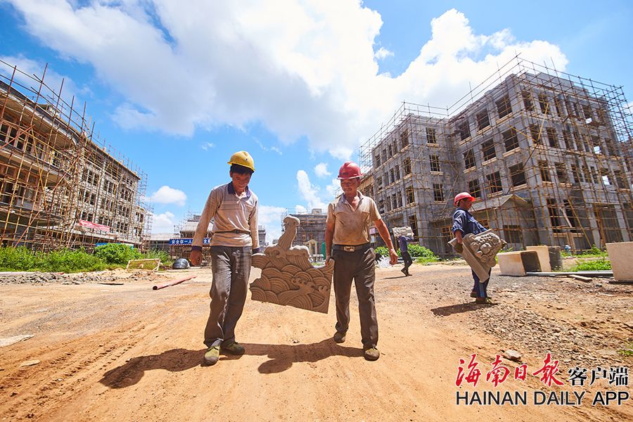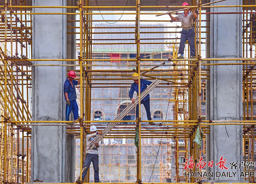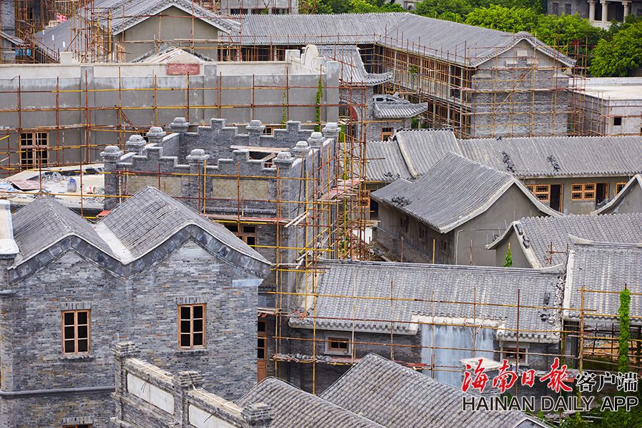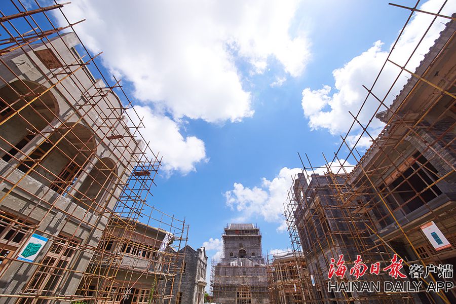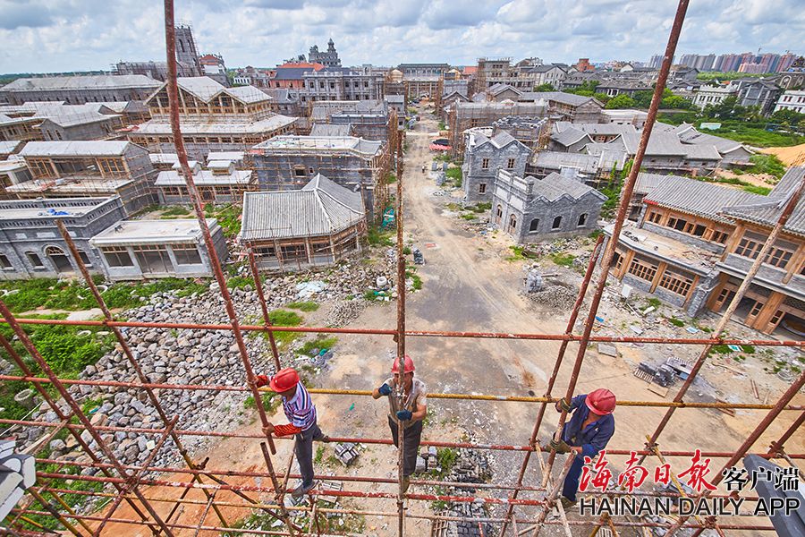 2019年8月28日,海口觀瀾湖電影公社老北京風(fēng)情街施工現(xiàn)場(chǎng),工人們正搭設(shè)鋼架,以進(jìn)行隨后的立面裝飾工作。 據(jù)了解,電影公社老北京風(fēng)情街現(xiàn)已完成建筑砌體及抹灰工程,目前主要進(jìn)行建筑外立面裝飾工作,進(jìn)度已達(dá)70%,并計(jì)劃于2020年6月30日前完成整體園林及綠化工程,具備開(kāi)放展示條件。圖為:電影公社老北京風(fēng)情街施工現(xiàn)場(chǎng)全貌。(海南日?qǐng)?bào) 見(jiàn)習(xí)記者 封爍 攝)