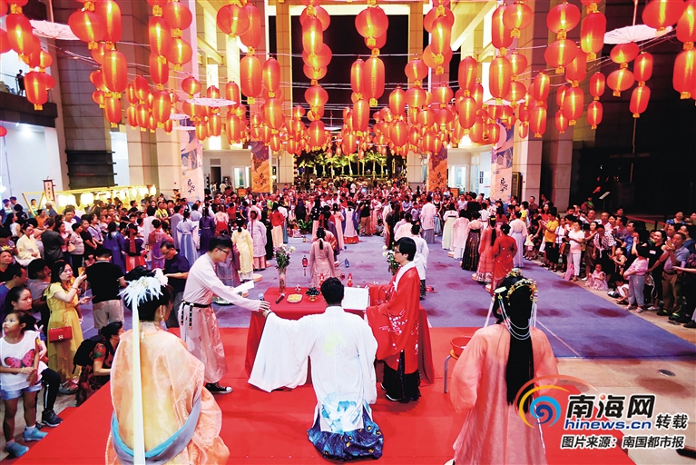 9月13日中秋佳節(jié)19時許,省博物館半空點綴著紅燈籠,穿著對襟襦裙、嫦娥仙子裝扮的美女,吸引了眾多市民游客參與當晚的中秋之夜系列文化活動,而海南傳統(tǒng)特色小吃、傳統(tǒng)手工藝品等組成的古韻市集也令市民吃得盡興,賞得高雅。