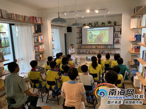 老水兵在希望書屋為孩子們講海的故事。希望書屋供圖