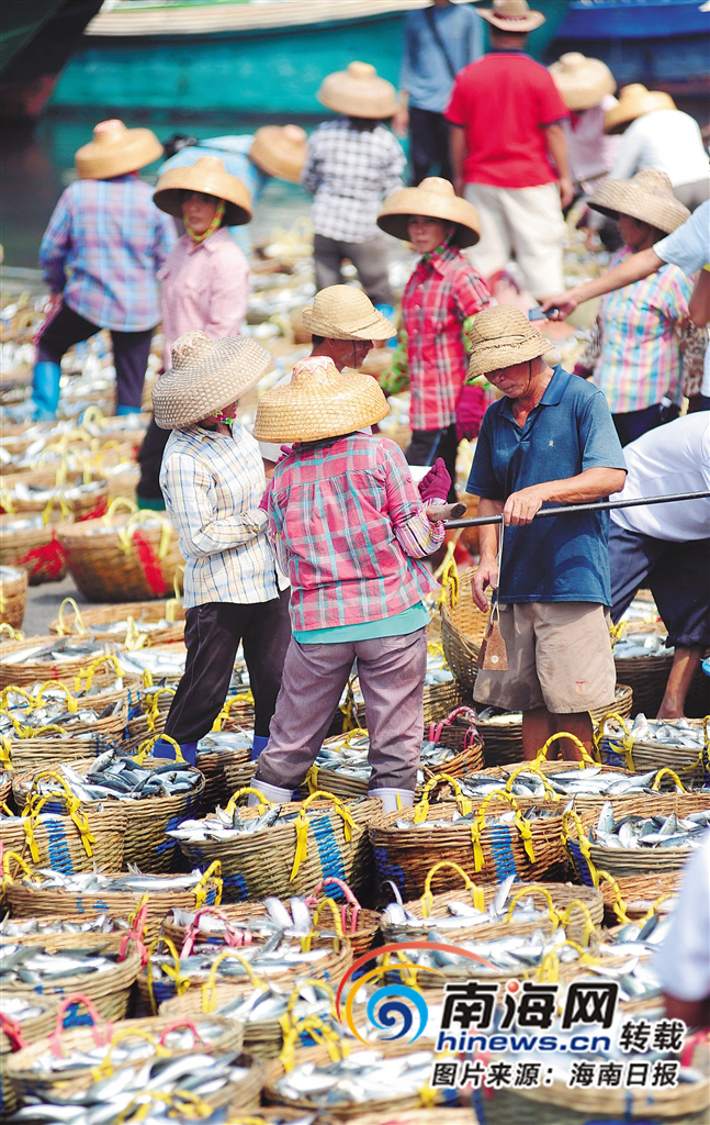 每天清晨,是小鎮最熱鬧的時候,這份熱鬧來自潭門海鮮市場。早上8點左右,潭門碼頭一側,已經停泊了很多夜航捕漁歸來的漁船,漁民一邊忙著把漁獲搬到岸上,一邊和在這里等待進貨的客商熱情地打著招呼。