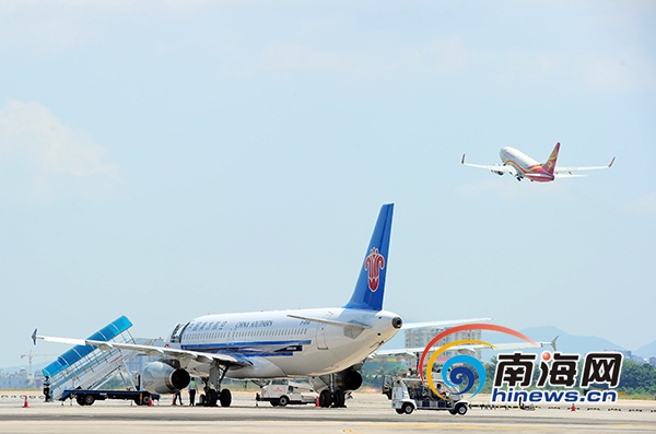 一架飛機(jī)從三亞鳳凰國(guó)際機(jī)場(chǎng)起飛。南海網(wǎng)記者 沙曉峰攝