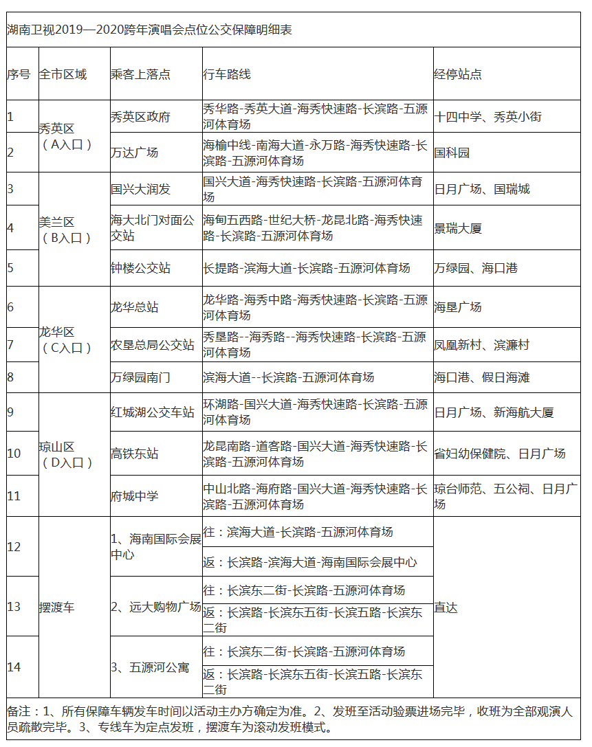 12月31日海口14條免費(fèi)公交專線接你看湖南衛(wèi)視跨年演唱會
