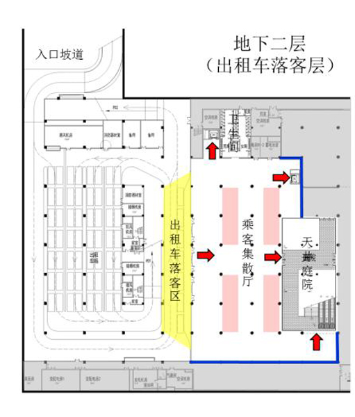 圖3 負(fù)二層(落客層)出租車流線