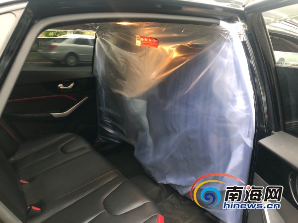 網約車恢復運營后,許多海口和三亞的網約車有了新變化,車輛前排和后座之間多了一層防護膜。南海網記者 周靜泊 攝