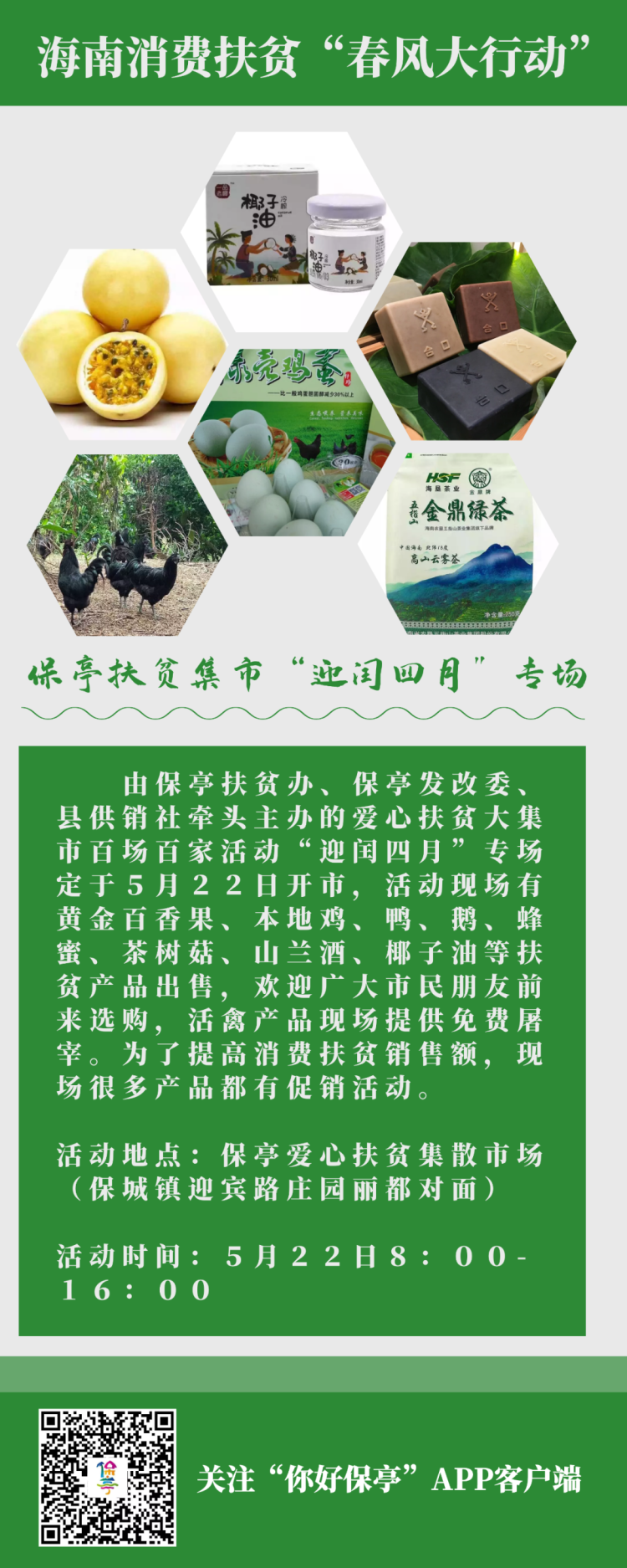 海南消費扶貧“春風大行動” 保亭扶貧集市“迎閏四月”專場5月22日開市